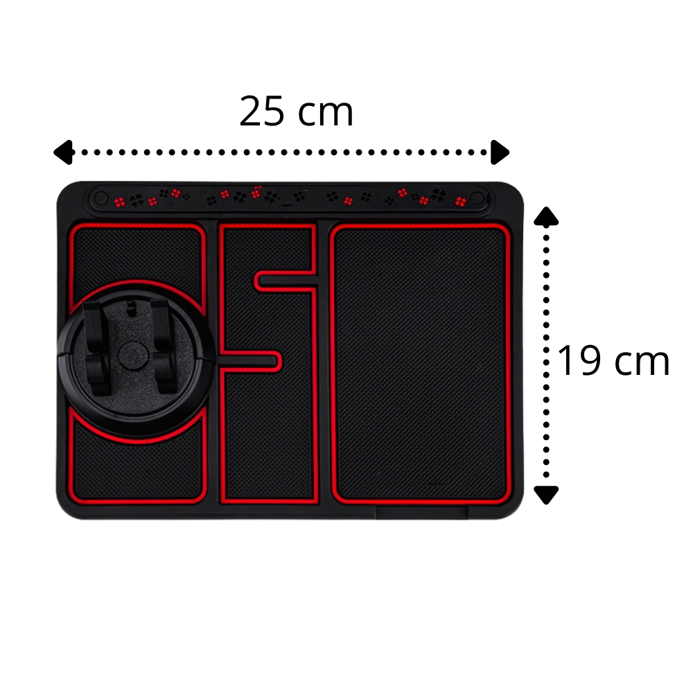 Ainsi, un support de téléphone antidérapant est un objet très utile. Ce support antidérapant en particulier, cependant, n'est pas seulement un support de téléphone ordinaire. Ce tapis bénéficie d'une conception 4 en 1 innovante qui le rend unique. Cet ensemble fonctionnel et bien ordonné comprend un support GPS/téléphone, un affichage du numéro de contact, une fente d'aromathérapie et un tapis antidérapant. Alors pourquoi se contenter d'une seule fonctionnalité alors que vous pouvez en avoir quatre? C'est l'objet idéal à garder sur le tableau de bord de votre voiture. Il peut également contenir vos clés, votre monnaie et tout autre élément auquel vous souhaitez accéder facilement.